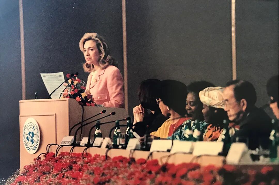 希拉里在自传《亲历历史》中说,当飞机横跨太平洋上空时,她的演讲稿已经修改了五六遍,在最终确定草案前,她要求负责审定的外交专家,包括国务卿奥尔布赖特等,尽可能给她空间“挑战妇女权利的极限”。